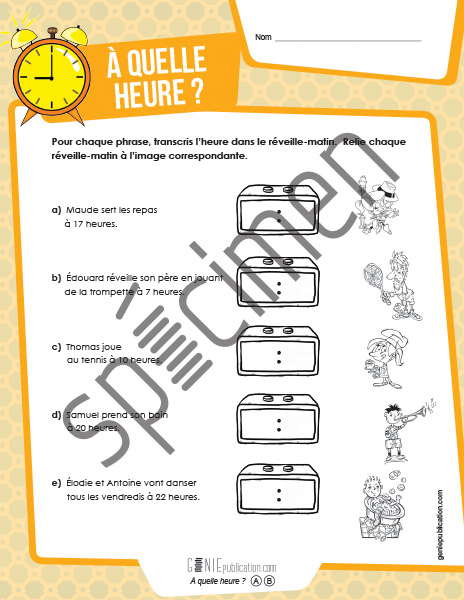 L'élève s'exerce à transcrire des heures et à les associer à des activités courantes.