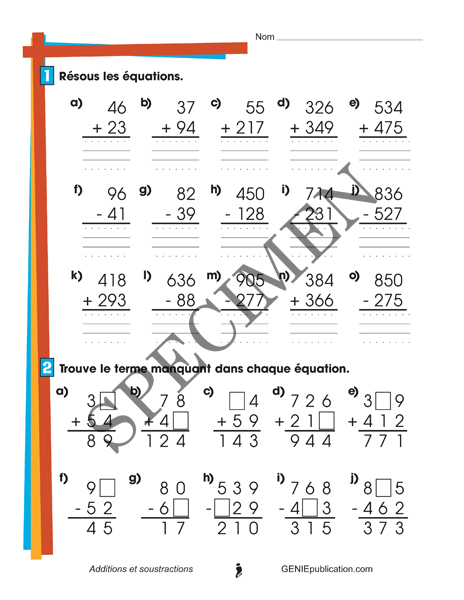 L'élève doit compléter les expressions mathématique. Activité pour 2e année.