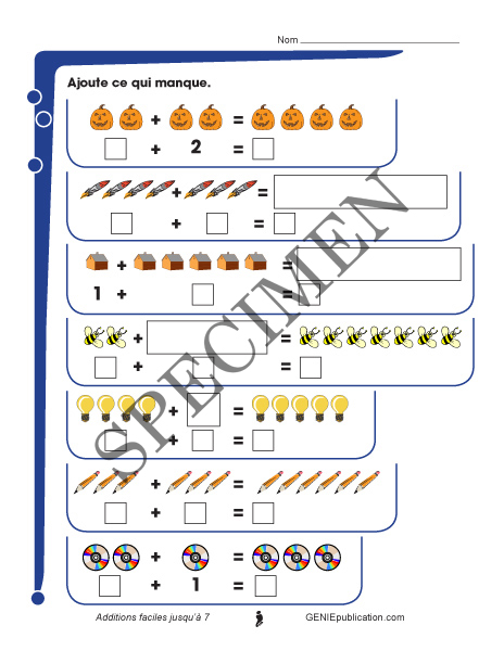 Ajoute ce qui manque et complète les additions jusqu'à 7.