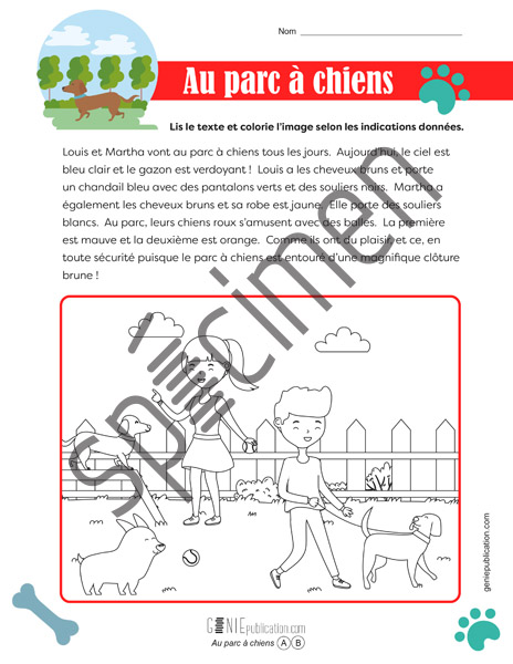 Dans cette activité, l’élève doit colorier l’image selon les indications trouvées dans un court texte.