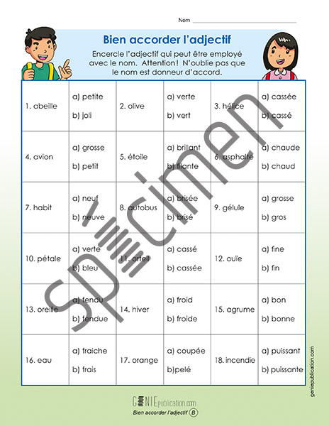 L'élève doit trouver l'adjectif qui est bien accordé avec le nom.