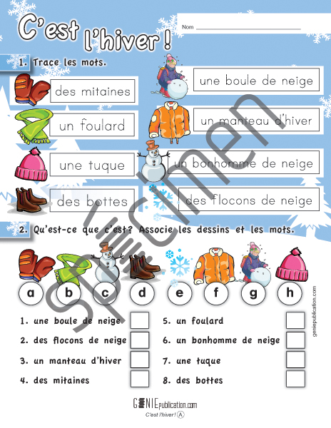 Activité d'écriture et de vocabulaire sur le thème de l'hiver.