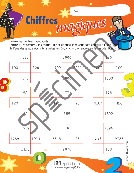 L'élève doit trouver les termes manquants des tableaux en utilisant les quatre opérations.