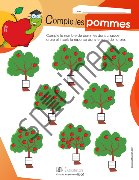 Petite activité de dénombrement et d'écriture sur le thème des pommes.