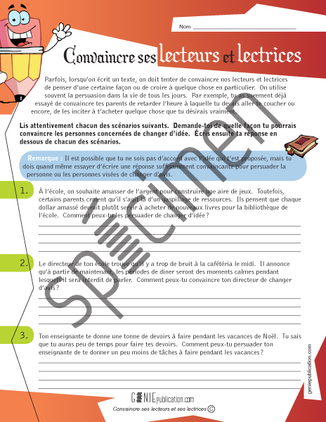 L'élève doit réagir à trois mises en situation en écrivant de courts textes visant à convaincre.