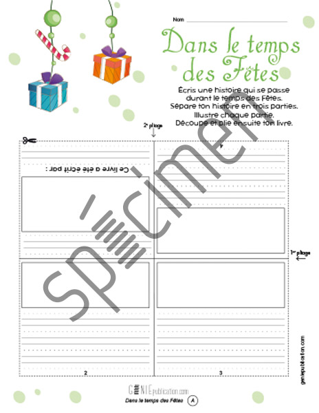 L'élève doit écrire une petite histoire qui se passe dans le temps des Fêtes.