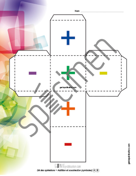 Dé pour jouer avec les élèves en utilisant les additions et les soustractions.