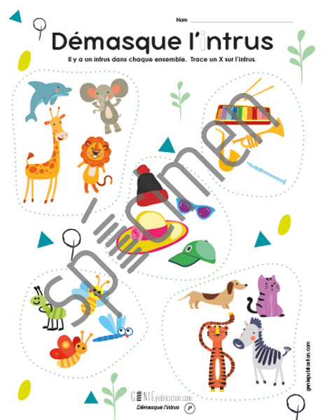 L'élève doit trouver l'intrus parmi un ensemble de quatre choses. La réponse dépend de la justification donnée par l'élève.