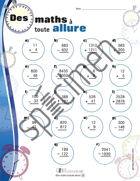 L'élève doit résoudre des opérations mathématiques le plus rapidement possible.
