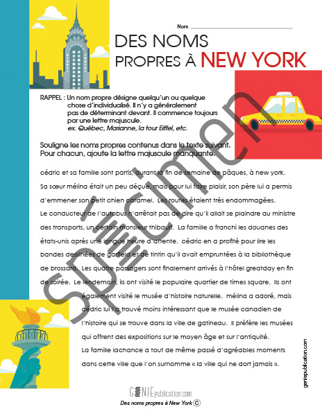 L'élève doit repérer les noms propres dans un texte et leur ajouter une lettre majuscule.
