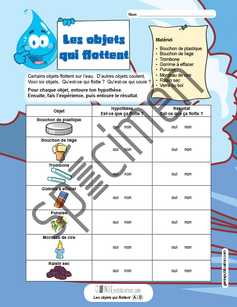 L'élève expérimente la flottabilité de divers objets.