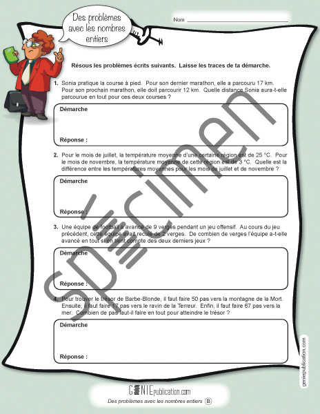 L'élève doit résoudre quatre courts problèmes écrits faisant appel à l'addition et à la soustraction.
