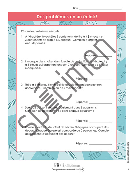 Activité avec 10 problèmes écrits à résoudre en un éclair.