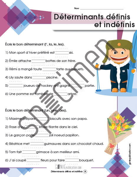 L'élève doit ajouter le bon déterminant pour compléter chacune des phrases.