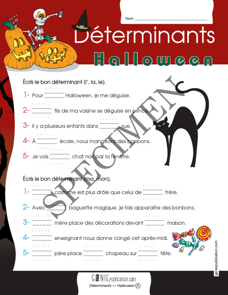 L'élève doit ajouter le bon déterminant pour compléter chacune des phrases.