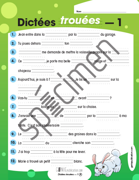 L’enseignant doit lire à voix haute chacun des numéros de la dictée trouée et l’élève doit remplir les espaces vides en orthographiant correctement les mots appropriés.
