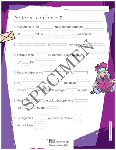 L'enseignant doit lire à voix haute chacun des numéros de la dictée trouée et l'élève doit remplir les espaces vides en orthographiant correctement les mots appropriés.