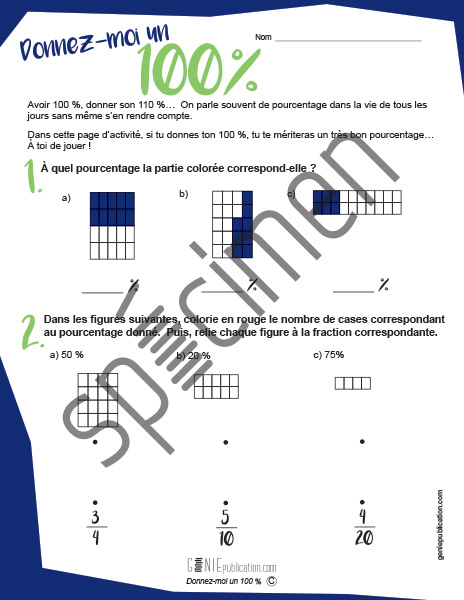 L'élève doit faire des liens entre les pourcentages, les fractions et les représentations graphiques qui leur sont associés.