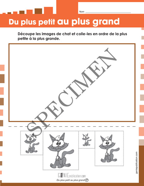 L’élève doit découper et placer des images dans l’ordre de la plus petite à la plus grande.
