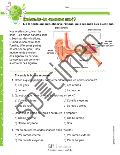 L’élève lit un texte, observe un schéma, puis répond à des questions.