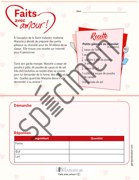 Dans cette activité, l’élève doit calculer les quantités que madame Marjorie devra demander à sa voisine.