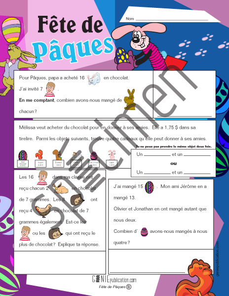 Petites résolutions de problème illustrées sur le thème de Pâques.