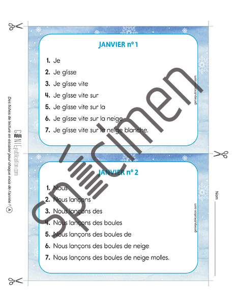 Cette activité contient 48 fiches de lecture en escalier (4 pour chaque mois de l’année) afin de pratiquer la fluidité, le décodage et la compréhension. Parfaite pour donner confiance aux premiers lecteurs et aux premières lectrices, elle permet de développer les bases de la lecture de façon progressive.