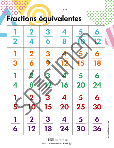 Affiche qui présente des fractions équivalentes.