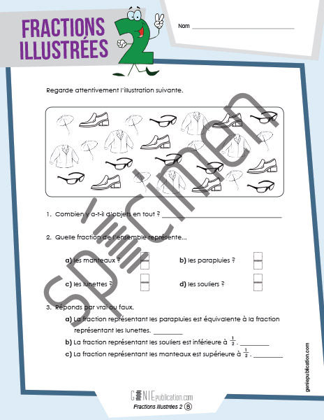 L'élève doit observer une illustration, puis, il doit répondre à des questions portant sur les fractions.