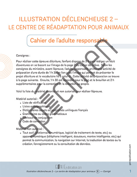 3) Épreuve d’écriture : Illustration déclencheuse 2 – Le centre de réadaptation pour animaux