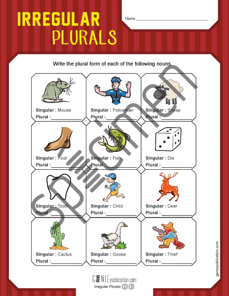L'élève doit orthographier correctement des noms dont la forme au pluriel est irrégulière.