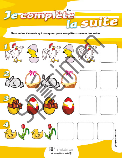 L'élève doit compléter des suites logiques sur le thème de Pâques.