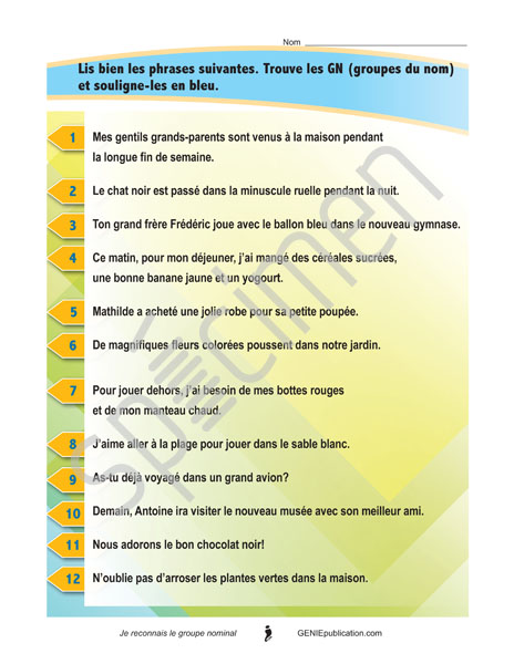 Avec cette activité, les enfants pourront s'exercer à reconnaitre les groupes nominaux contenus dans de petites phrases.