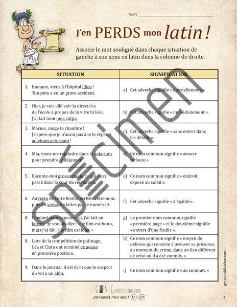 Activité pour découvrir la signification de plusieurs mots d'origine latine.