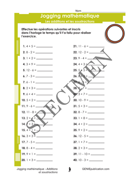 L'élève doit compléter les expressions mathématiques le plus rapidement possible.