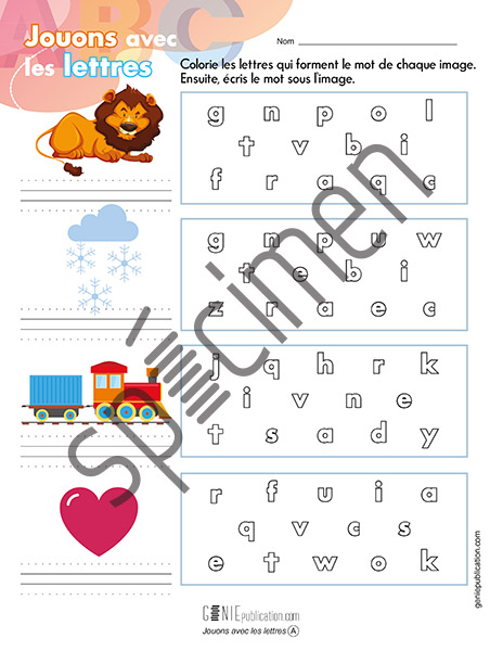 L'élève doit colorier les lettres du mot illustré sur l'image, puis écrire ce mot.