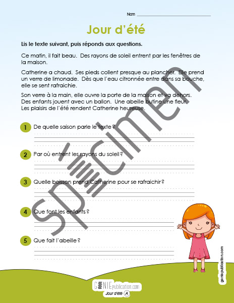L'élève doit lire un texte et répondre aux questions.