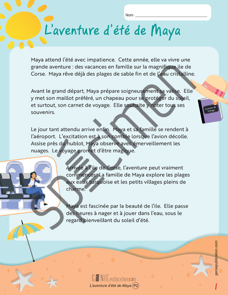 L’élève lit une histoire qui raconte le voyage de Maya et sa famille sur l’ile de Corse. Ensuite, il répond à 10 questions.