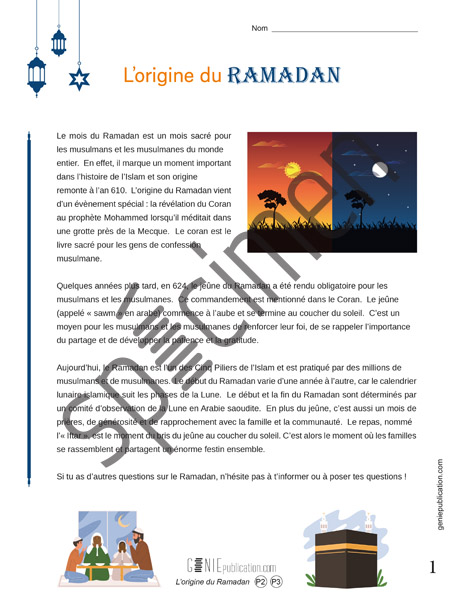Dans cette activité, l’élève lit un texte sur l’origine du Ramadan. Ensuite, en équipe de deux, les élèves répondent à 8 questions.