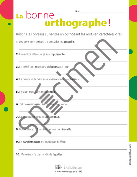 L'élève doit écrire correctement des mots qui ne sont pas orthographiés correctement.
