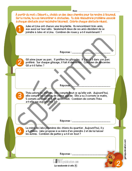 L'élève doit résoudre des problèmes pour pouvoir atteindre l'écureuil.