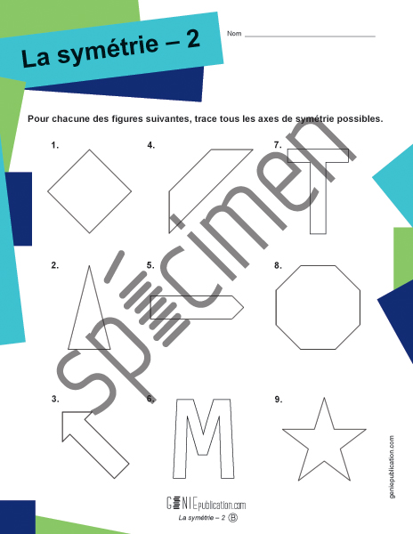 L'élève doit tracer tous les axes de symétrie possible de différentes figures géométriques.