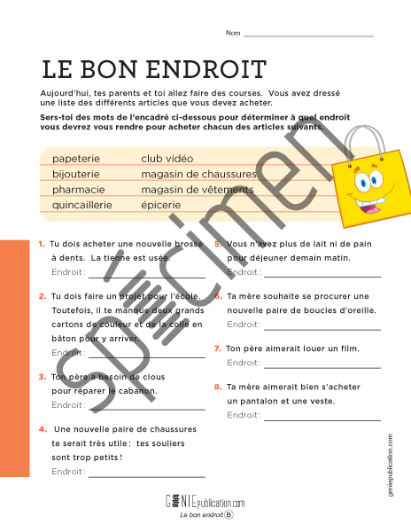 L'élève doit déterminer à quel endroit il pourrait se procurer différents articles.