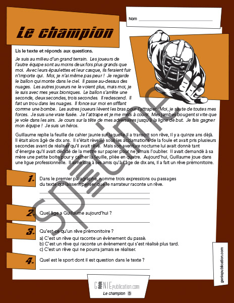 L'élève doit répondre à des questions portant sur le texte narratif qu'il a lu.