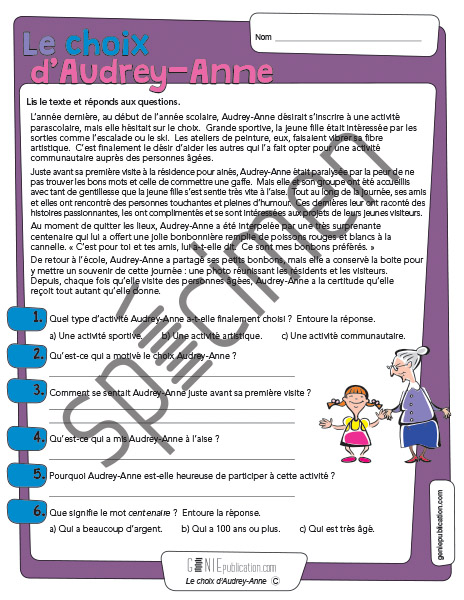 L'élève doit répondre à des questions portant sur le texte narratif lu.