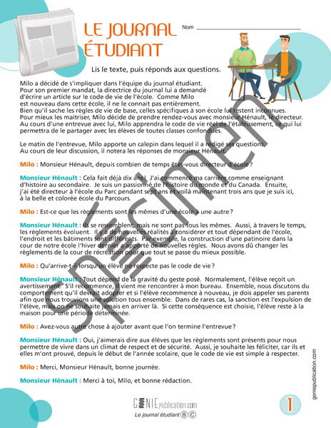 L'élève lit le texte, répond aux questions et rédige un court texte d'opinion.