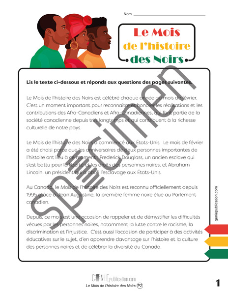 Dans cette activité, l’élève lit un texte sur le Mois de l’histoire des Noirs, célébré chaque année au mois de février. Ensuite, il répond à 10 questions. L’élève en apprendra davantage sur l’origine de cette période significative et sur l’importance de ce moment de reconnaissance.