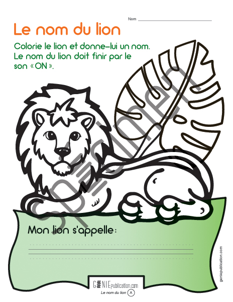 L'élève doit colorier une illustration et écrire un nom propre se terminant par le son « ON ».