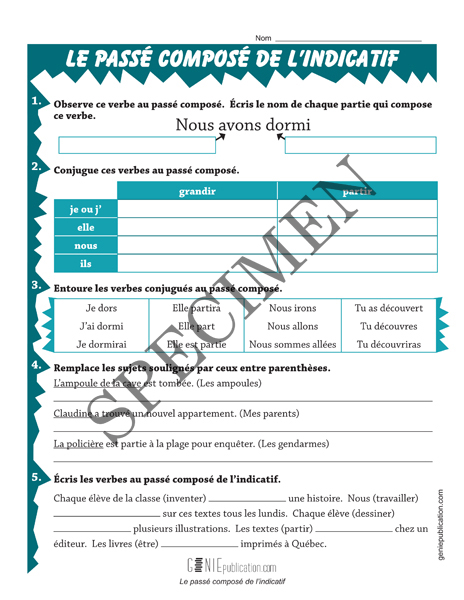 L'élève devra accorder différents verbes au passé composé de l'indicatif et accorder correctement certains participes passés avec l'auxiliaire être.