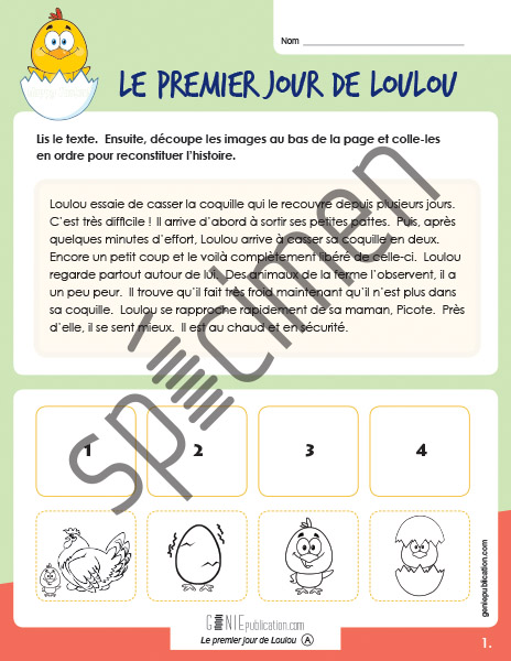 L'élève doit lire un texte. Ensuite, il doit placer des images en ordre pour reconstituer l'histoire. Il doit aussi répondre à des questions.